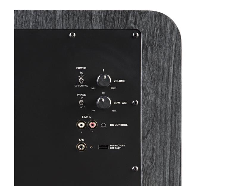Контрольная панель сабвуфера содержит регуляторы уровня сигнала и частоты настройки входного фильтра, а также переключатель абсолютной фазы. Для подключения к источнику сигнала предусмотрены линейный стерео и LFE-входы. В аппарате предусмотрена система автоматического включения при появлении сигнала на входе, а также разъем 12-вольтового триггера для дистанционного управления.